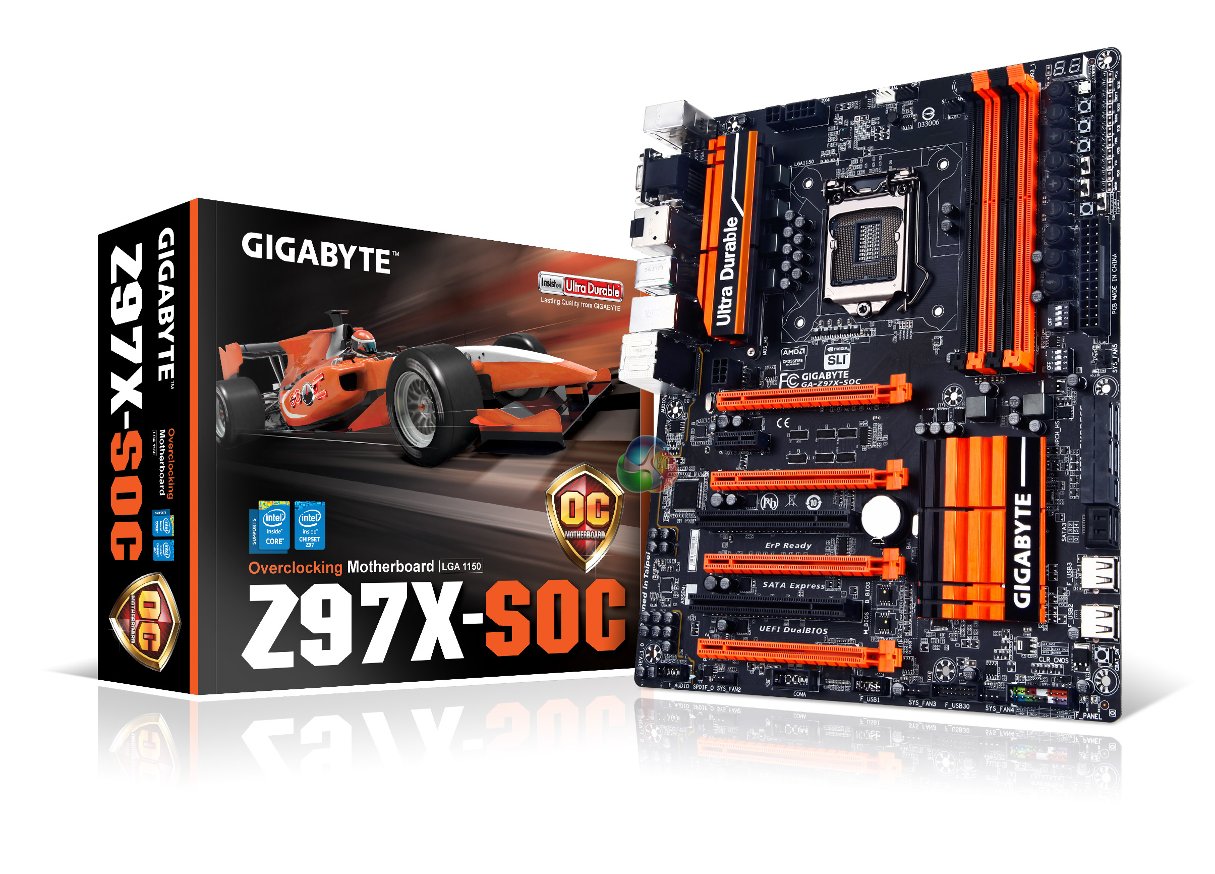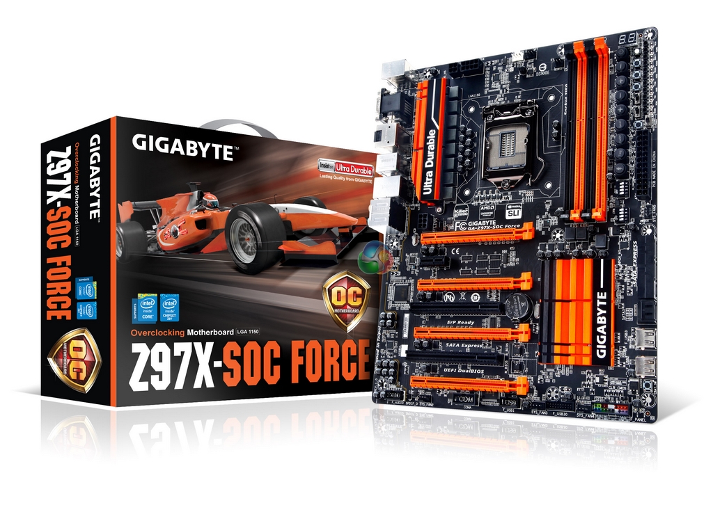The Z97X-SOC and Z97X-SOC Force both use bright orange and black colour schemes. We previewed the Gigabyte Z97X-SOC Force motherboard HERE.