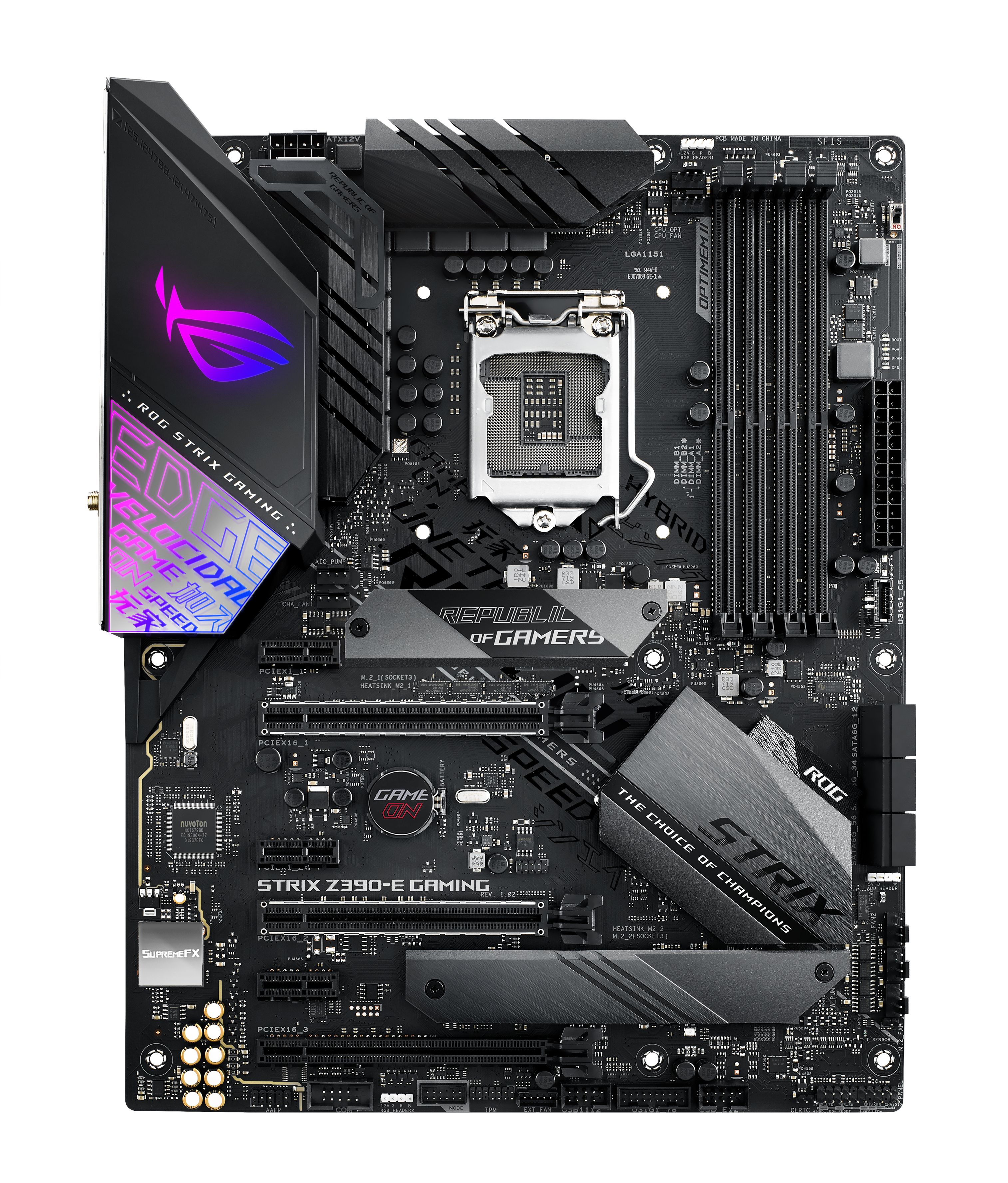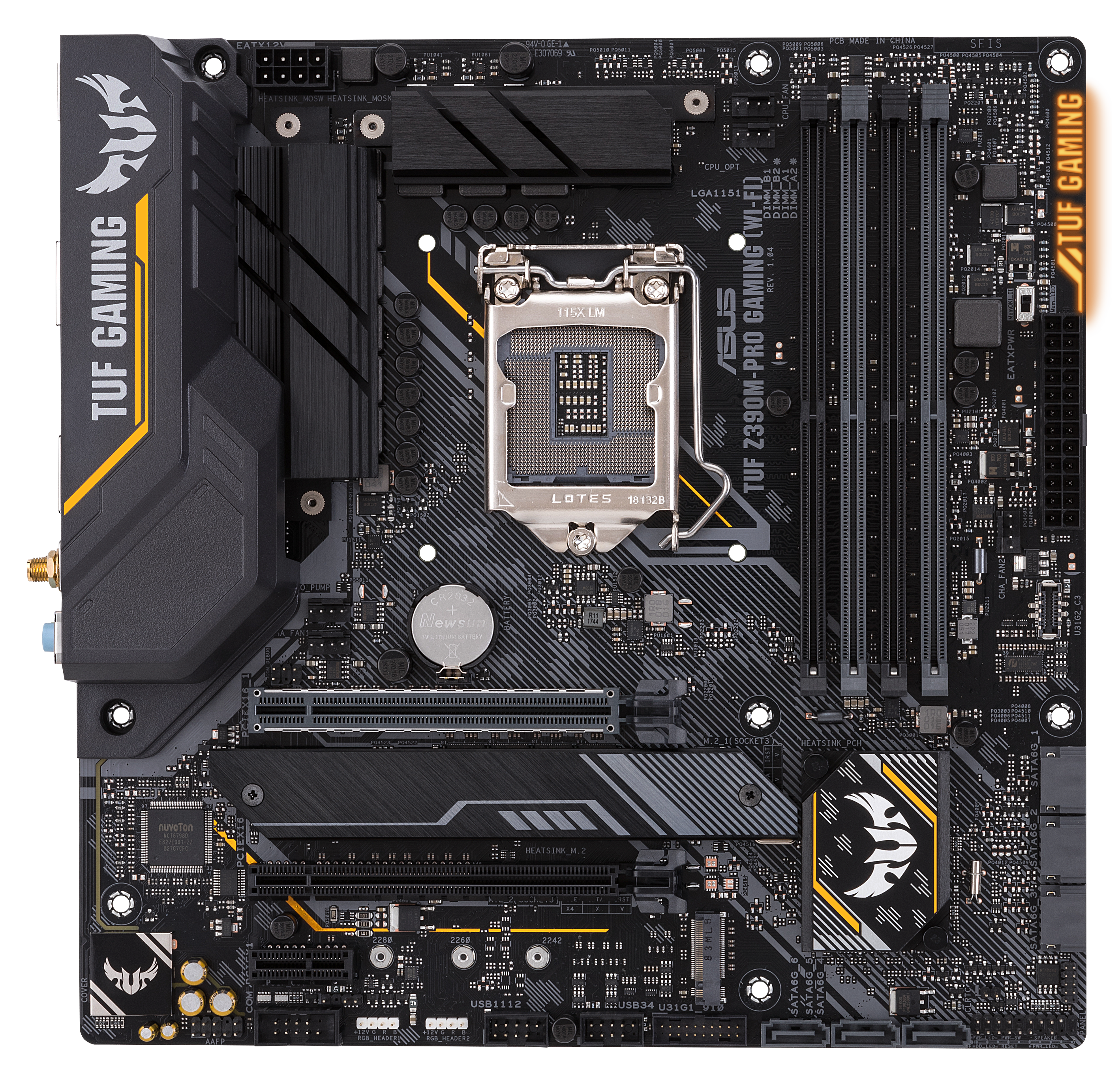 ASUS expanded on its TUF branding to combine “builder-friendly features with battlestation-ready themes,” offering a “growing collection” of additional hardware perfect for a uniform system. The TUF Z390-PRO Gaming and TUF Z390-PLUS Gaming are both ATX in size, while the TUF Z390M-PRO Gaming fills the smaller microATX market in both a standard and a WiFi-equipped version.