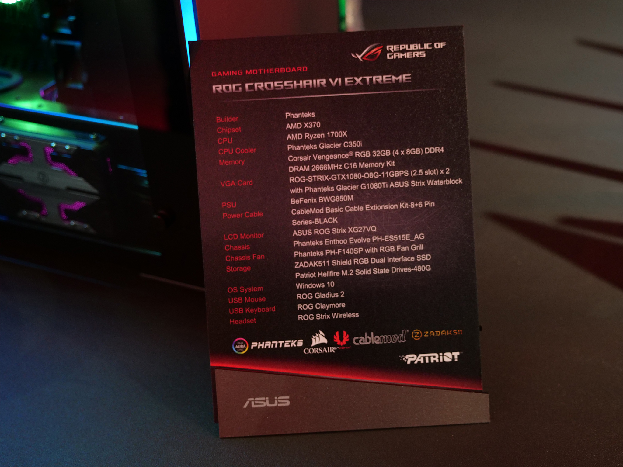 Lastly, we also got a look at an unnamed Phanteks systems, built in the excellent Enthoo Evolv chassis. This is another Ryzen system but uses the 1700X this time around, while it also sports 2x Strix GTX 1080 Ti graphics cards. All watercooled, of course.