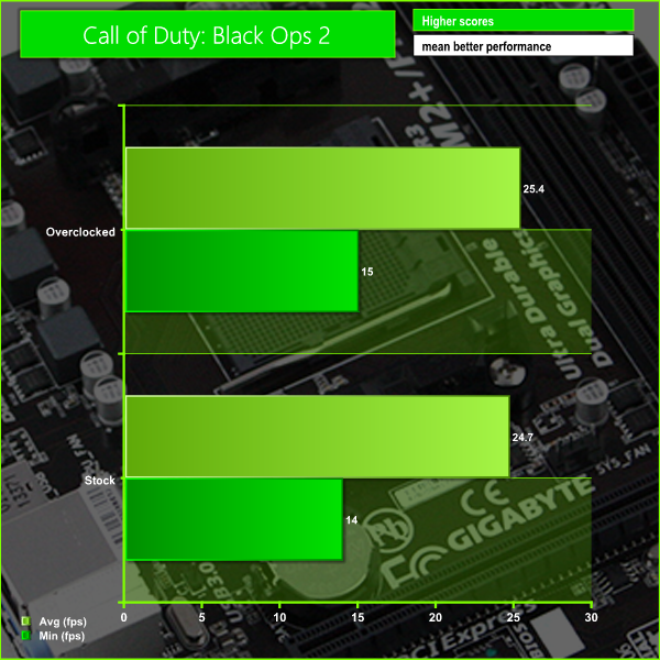 Black Ops 2 is the latest episode in the Call of Duty franchise and is one of the most popular games of the moment. It uses an updated version of the IW engine, used in previous Call of Duty games, which isn't particularly demanding. This makes it ideal for testing mid-range gaming systems like this.