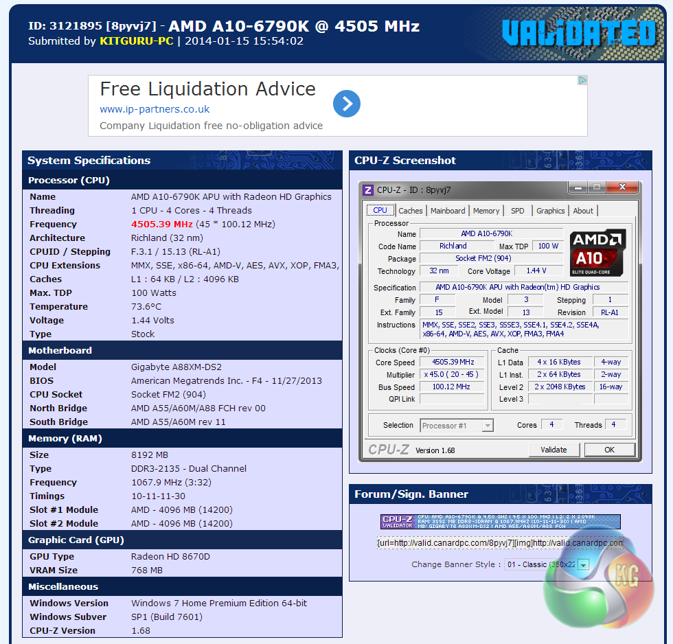 In our tests we will be evaluating the Gigabyte F2A88XM-DS2 with the AMD A10-6790K APU in both stock and overclocked states.