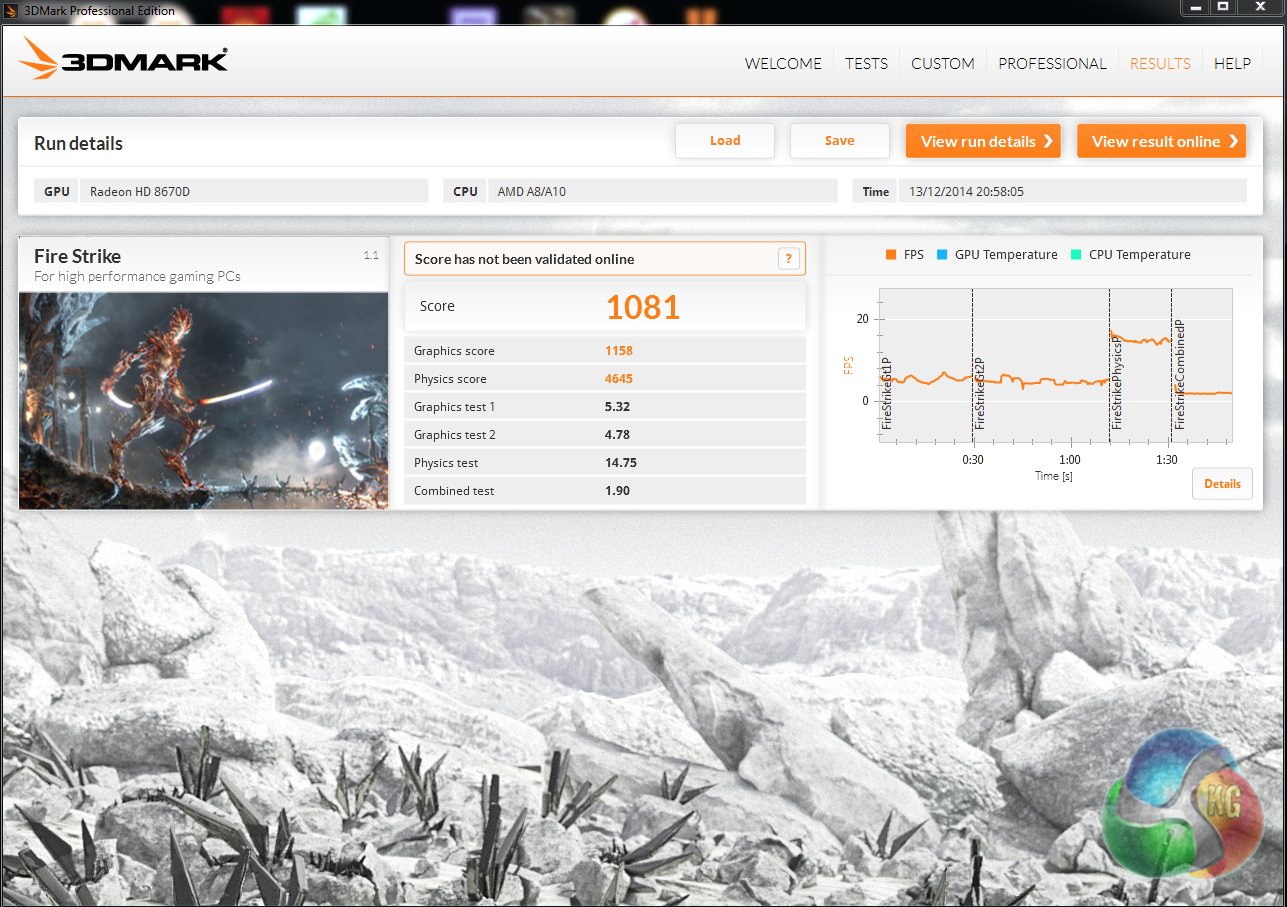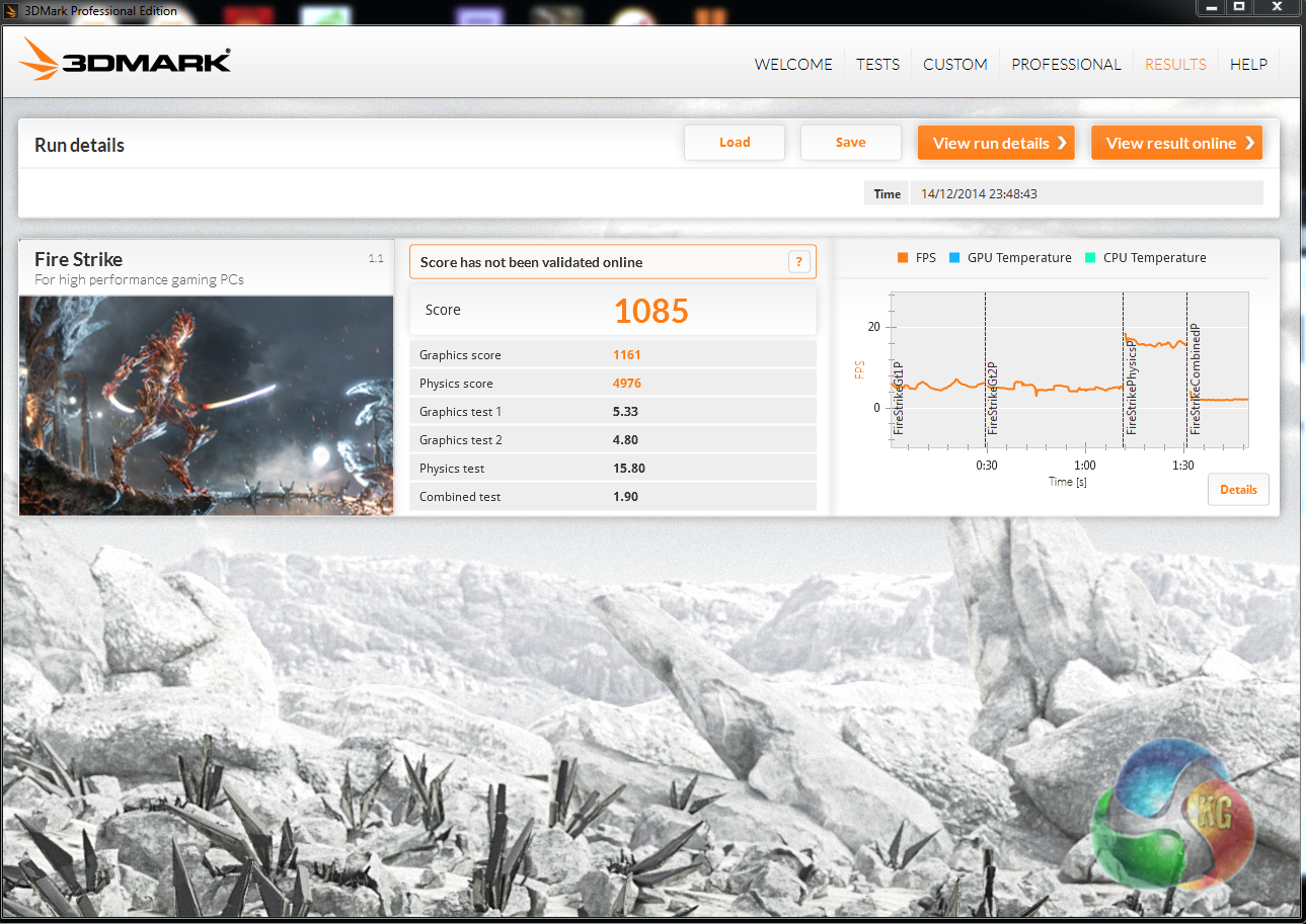 We used the ‘Fire Strike’ benchmark which is designed to be used on gaming PCs. We opted for the Normal setting, NOT the Extreme mode.