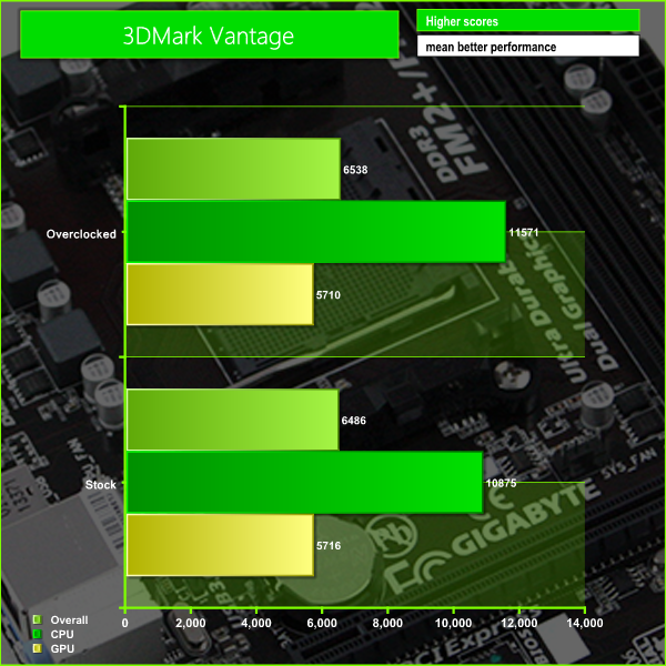 In 3DMark Vantage, we saw bigger improvements, especially in the CPU score.