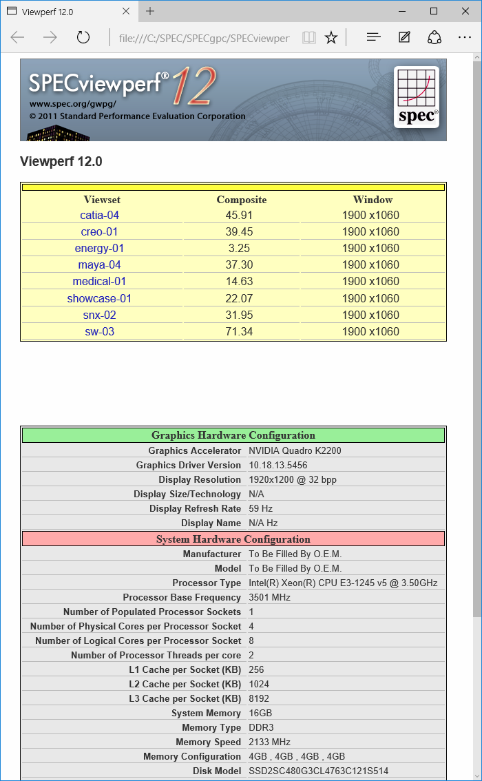 SPECviewperf 12 is the worldwide standard for measuring graphics performance based on professional applications. The latest version is SPECviewperf 12.0.2, which extends performance measurement from physical to virtualized workstations. SPECgpc members at the time of V12.0.2 release include AMD, Dell, Fujitsu, HP, Intel, Lenovo, Micron and NVIDIA. SPECviewperf 12 measures the 3D graphics performance of systems running under the OpenGL and Direct X application programming interfaces. The benchmark’s workloads, called viewsets, represent graphics content and behavior from actual applications.