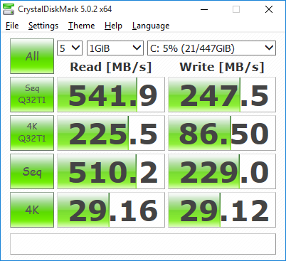 The PNY SSD lives up to its billing for read performance, and exhibits the reduced write performance we usually see with CrystalDiskMark.
