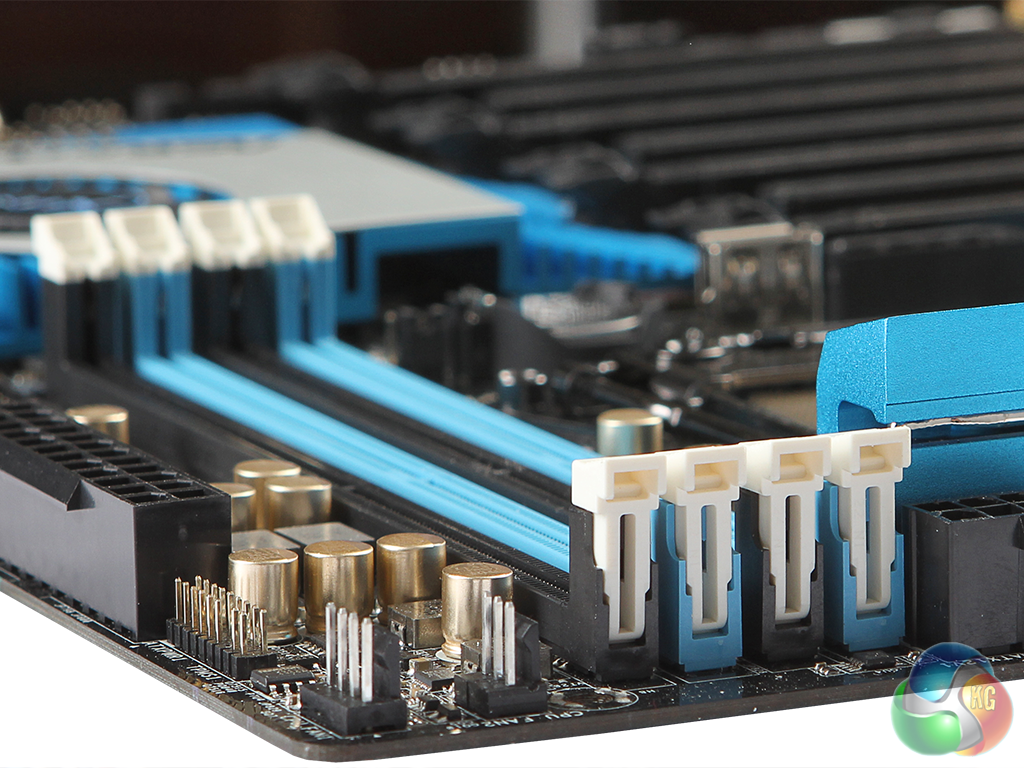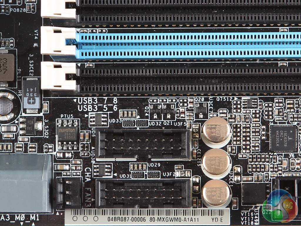 Nearby are headers for four more USB 3 ports, plus headers for four more USB 2 ports.
