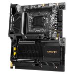 As a flagship motherboard, it features multiple pump, ARGB and RGB headers, as well as a slow mode and a PCIe disable switch. Contrary to most motherboards, the Z690 Dark K|NGP|N uses angled power connectors (24-pin + 2x 8-pin) on the right side of the board. In addition, you can find a multi-function POST indicator in the top right corner and an extra PCIe 6-pin power entry in the bottom left corner.