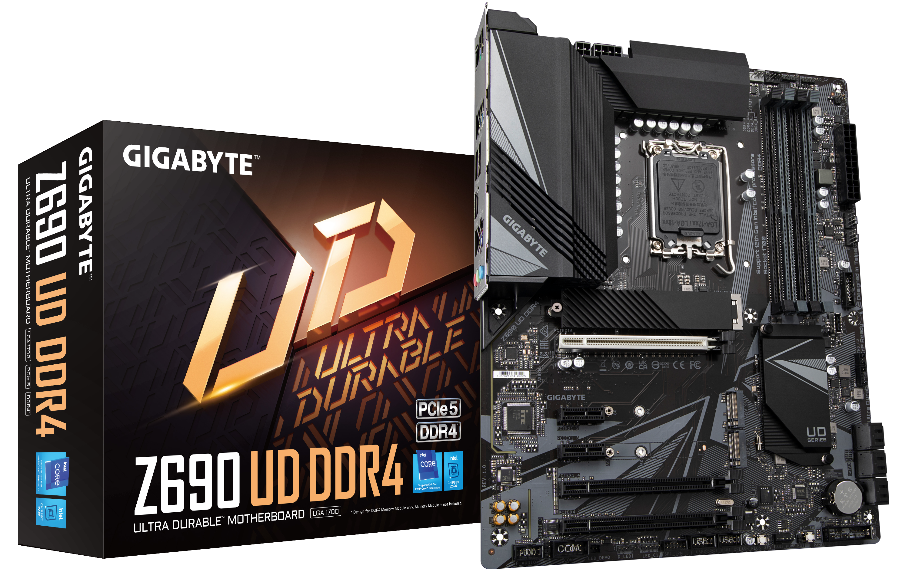 Starting at the bottom of the hierarchy in the Z690 line-up, there's the UD series. This series will consist of the Z690 UD DDR4, Z690 UD and the Z690 UD AX. As their name implies, only the latter two will support DDR5, leaving the first as the only DDR4-compatible solution for basic users. All of these models will come with a 16+1+2 digital VRM phase design cooled by MOS heatsinks with 5W/mK thermal pads and support for PCIe 5.0. It's also worth mentioning that only the Z690 UD AX has built-in WiFi connectivity.