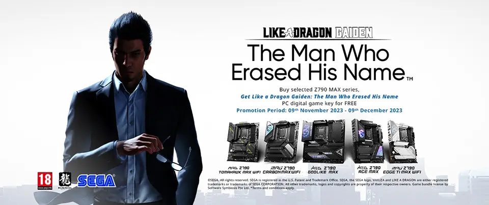 From November 9th to December 9th, you'll get a free game code for Like a Dragon Gaiden: The Man Who Erased His Name with the purchase of an MSI Z790 MAX series motherboard. If you are planning a system upgrade in the near future, you may be able to take advantage and grab a free game while you're at it.