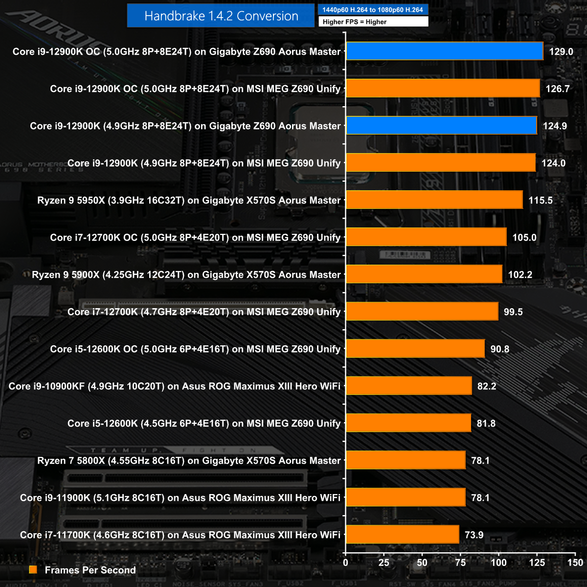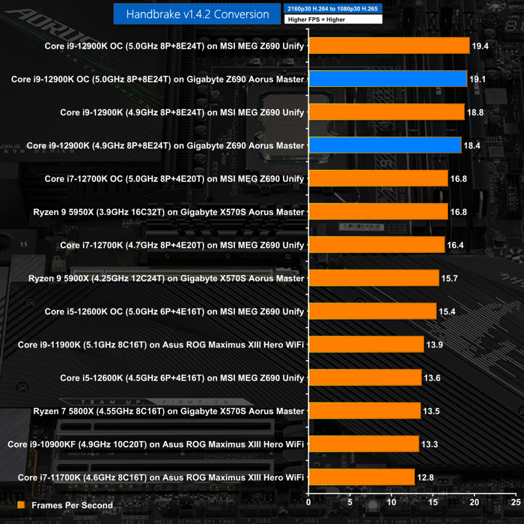 Our H.264 conversion test showed the Gigabyte Z690 Aorus Master in a very good light with performance that tops the chart.