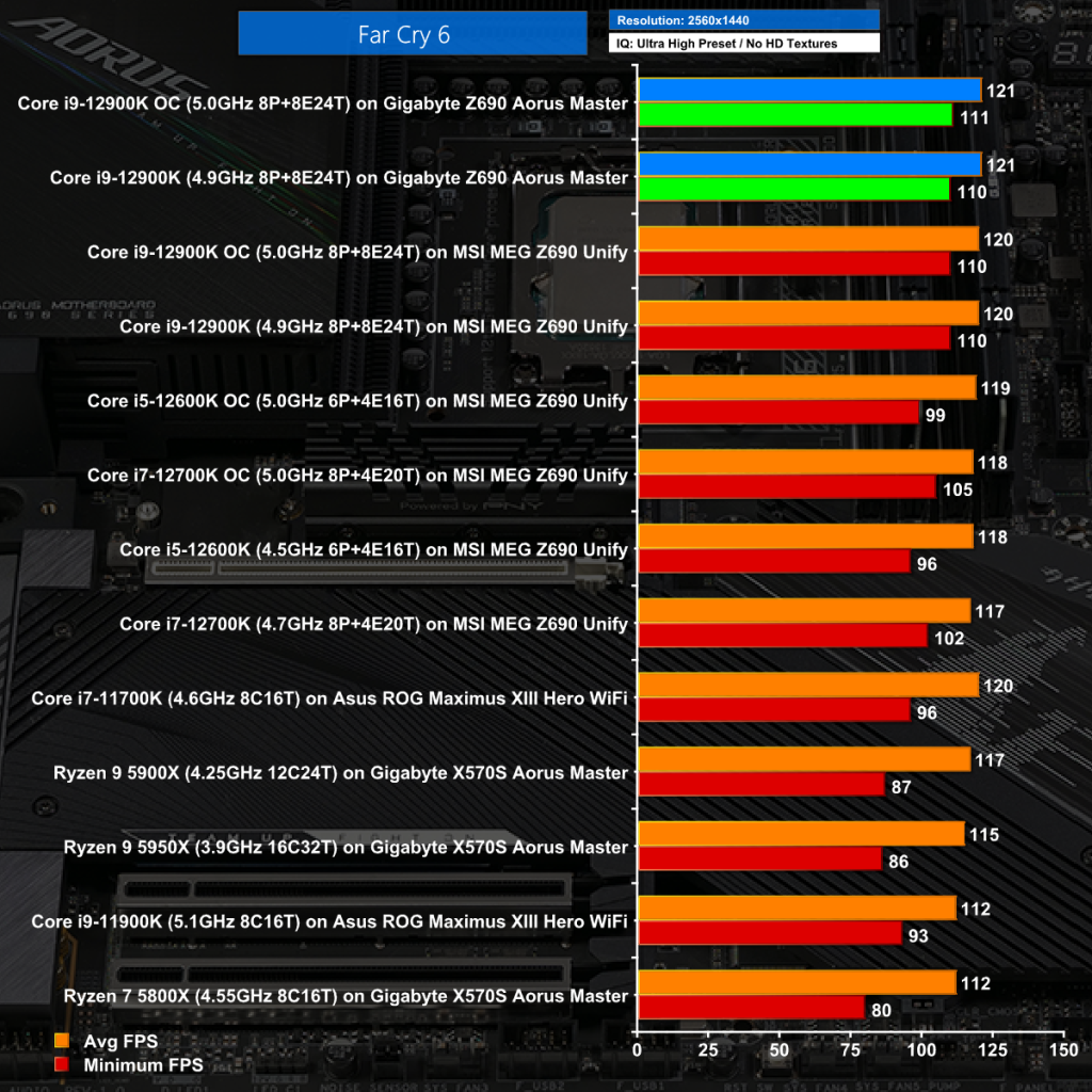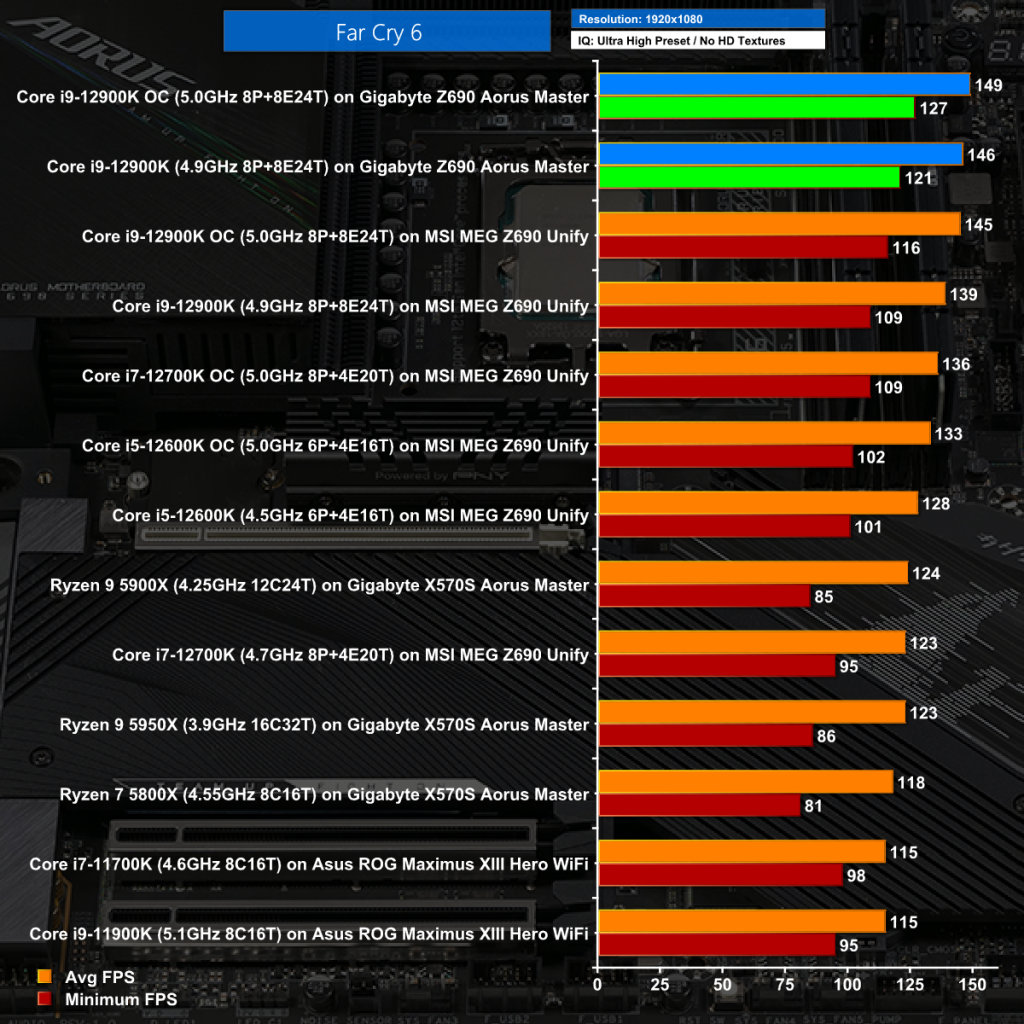 At 1080p in Far Cry 6 the gaming results on Intel Alder Lake are truly impressive.