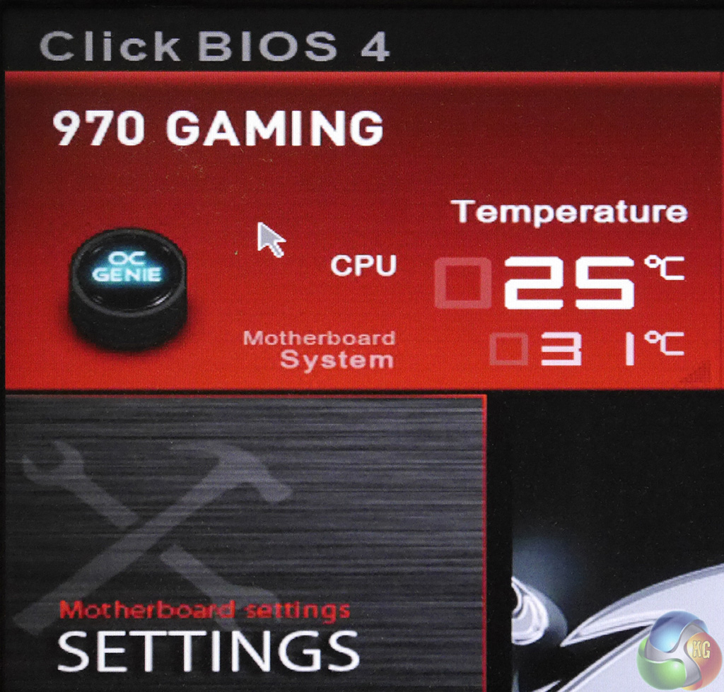 Instead you enter the set-up screen for the Click BIOS 4 and there, at the top left of the screen, you'll see a picture of a button labelled OC Genie. You probably missed it in the earlier screenshots of the BIOS but here it has been clicked and has lit up in blue.