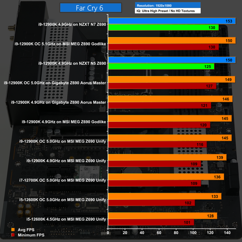 Far Cry 6 throws up a surprise as the NZXT N5 Z690 is impressively high on our chart.
