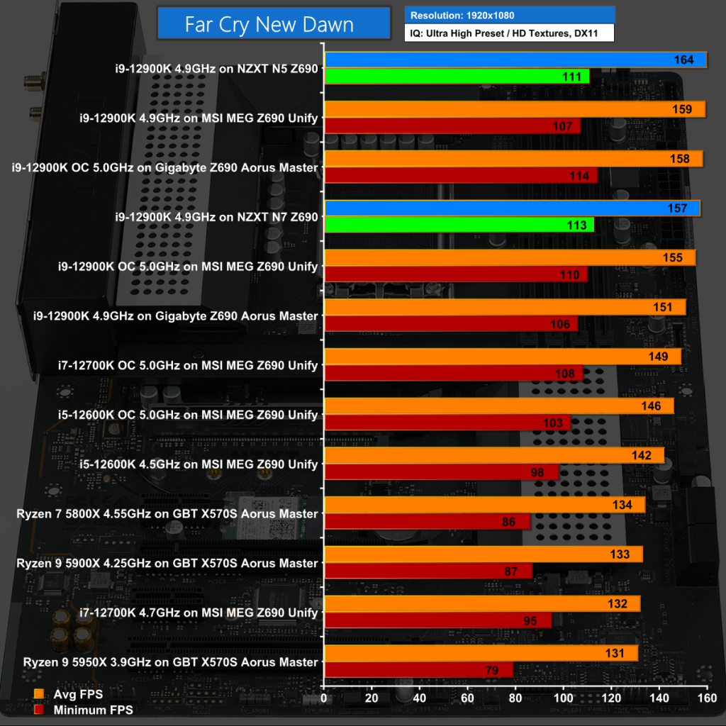 In Far Cry New Dawn the NZXT N5 Z690 soars to the the top of the chart by a clear margin.