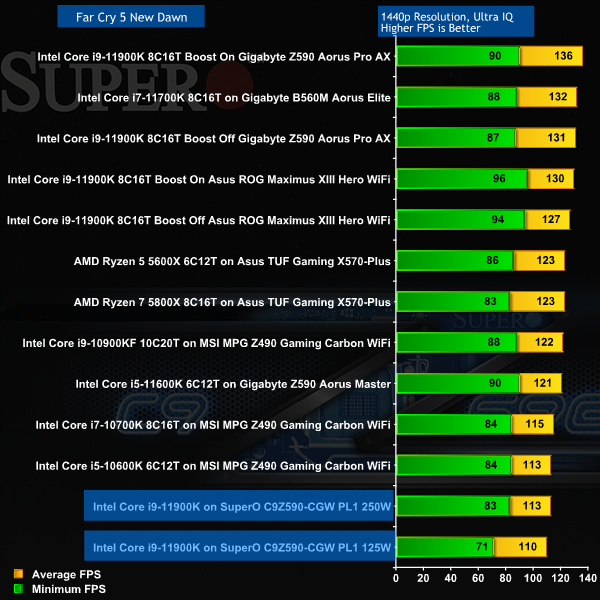 Our gaming test results on the SuperO C9Z590-CGW are little short of disastrous with a 10fps differential compared to the other motherboards. Whatever is going on feels more significant than a mere lack of clock speed and we have to hope that SuperO can unlock at least some of the missing performance with a BIOS update.