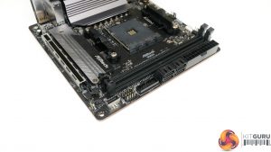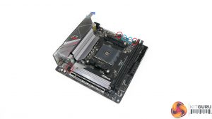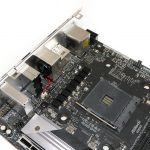 A single 8-pin power connector is nestled nicely in the top-left corner with good accessibility. The power delivered by a single 8-pin is highly likely to be fine for AM4 in mini-ITX form.