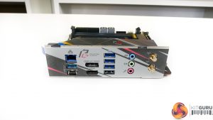 A partial rear IO shroud cover is a solid premium touch, and it is metal and joined with the VRM heatsink. There are no large vertical interferences or daughter boards – the overall design is very good from a perspective of minimising height and vertical interference