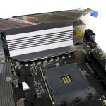 The rear, un-cooled M.2 slot runs at PCIe Gen 3×4 from the B550 chipset. There is very little room for a cooled M.2 SSD even with a thin heatsink like the WD_Black SN750. As such, this location should be reserved for drives with less demanding lifespans, such as an OS drive or a slower SSD with fewer write intensive workloads.