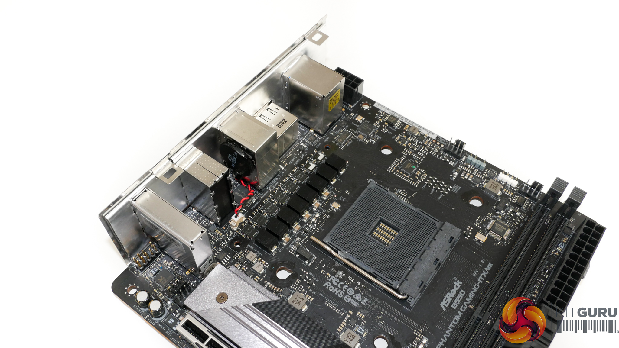 The B550 Phantom Gaming-ITX/AX motherboard's rear IO is reasonable by ITX standards.