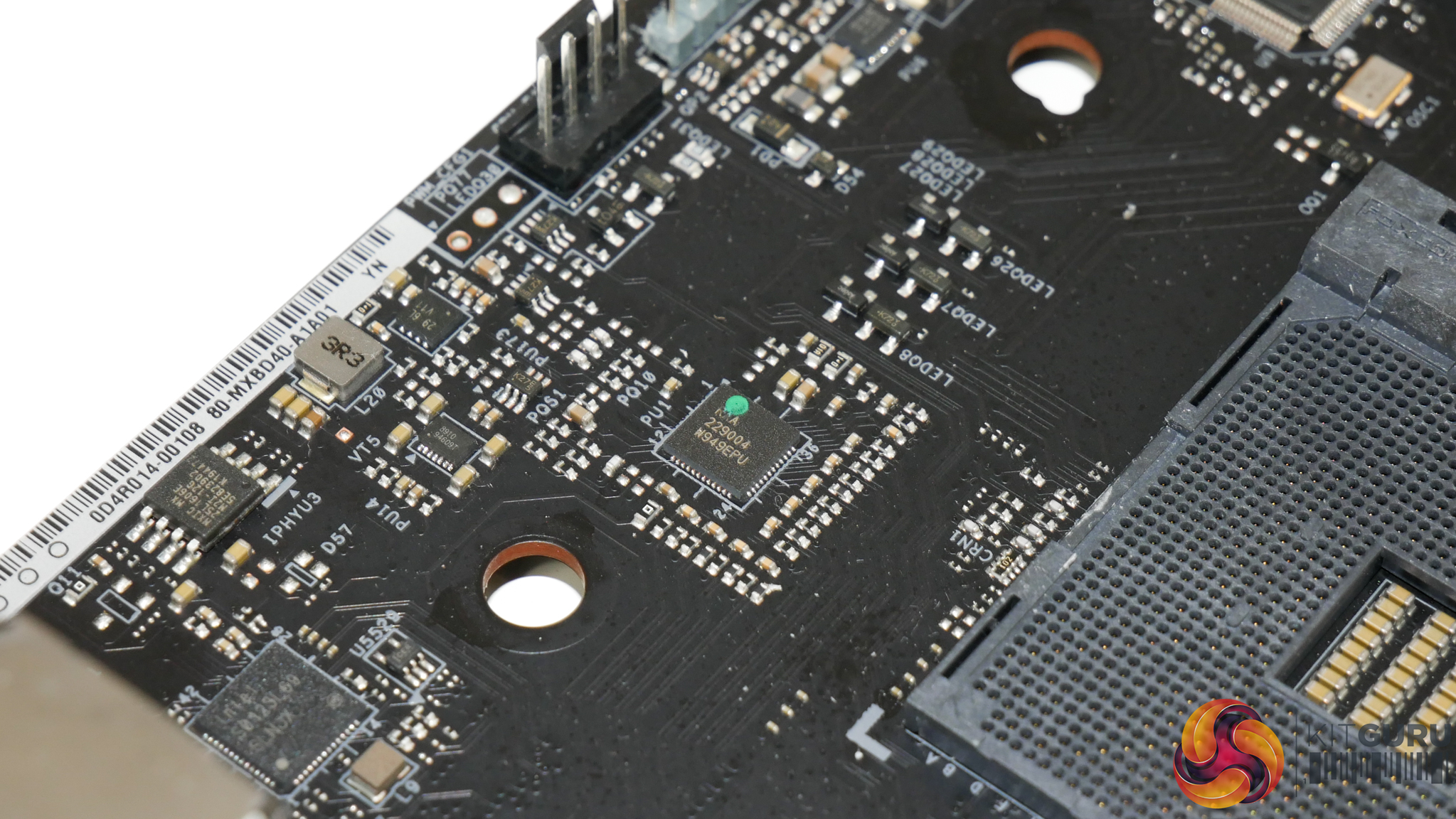 Two Intersil ISL99227 power stages are deployed for the SoC. These units are 60A rated and should deliver plenty of current for non-CPU components that demand power.