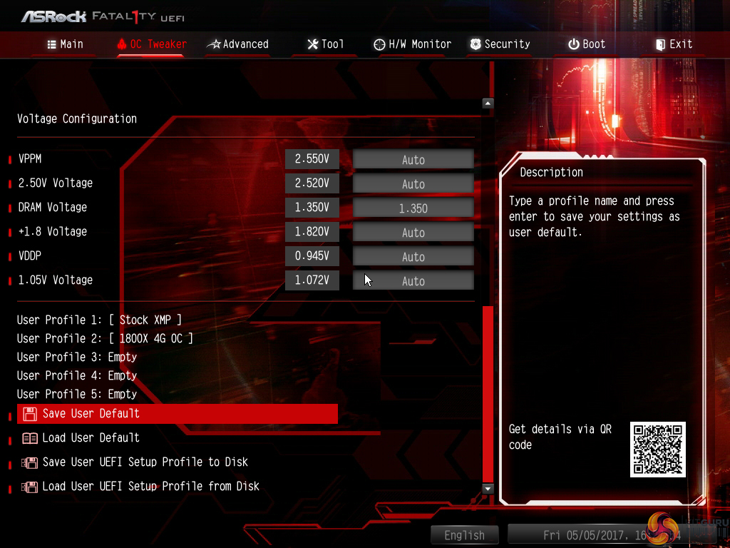 Up to five settings profiles can be saved, named, and stored internally to the motherboard.