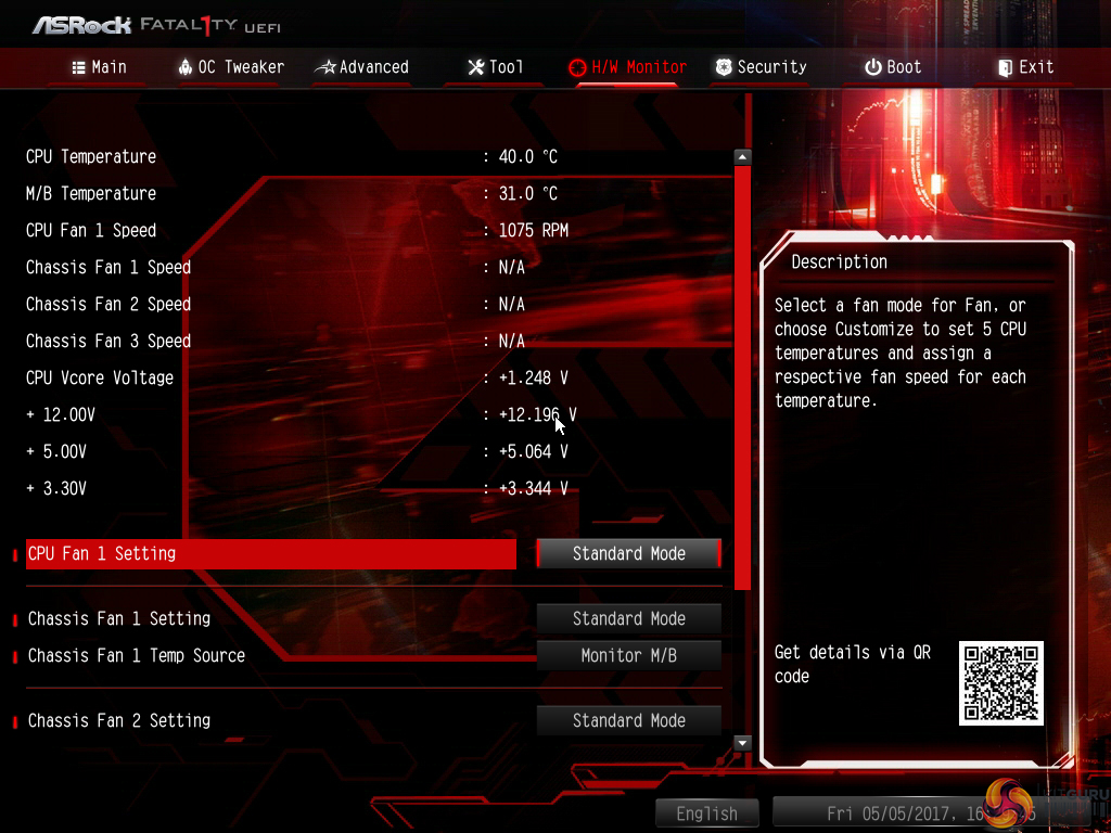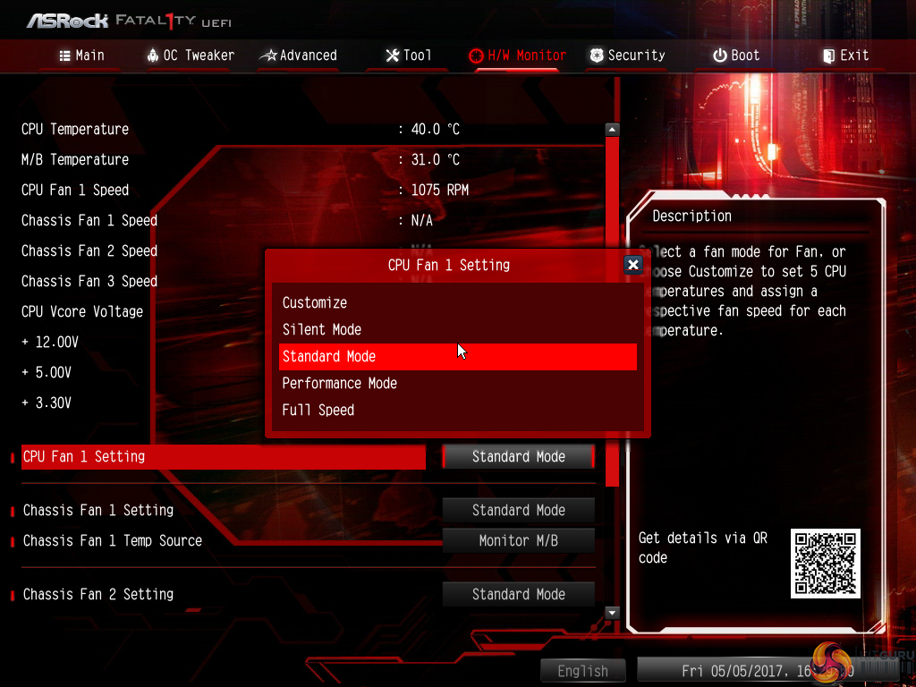 The fan options are adequate thanks to the variety of fan speed profiles but only CPU and motherboard temperature reading options. A user can set a well-tuned fan speed curve simply by opting for numerical inputs. We could not see an option for entering ASRock's excellent Fan-Tastic tuning utility through the UEFI. The feature looks to be disabled on this model.