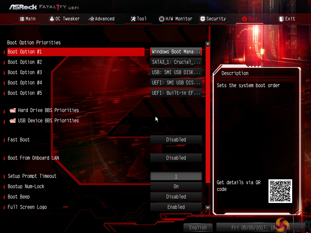 Security, Boot and Exit make up the last three tabs. There aren’t many interesting options within these but the boot tab does contain a number of useful options for boot order.