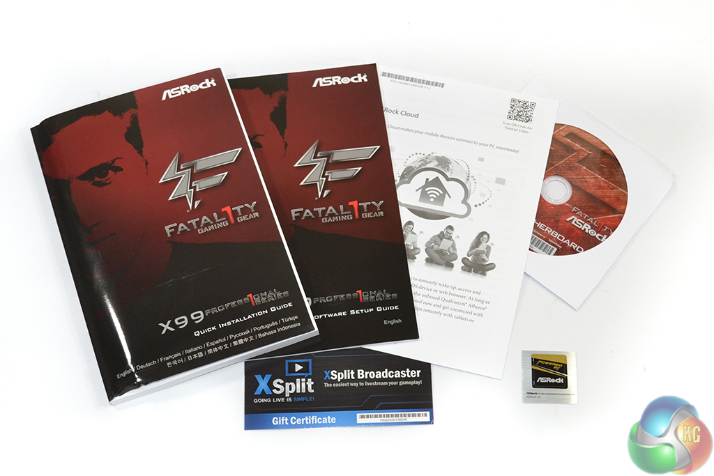 The usual affair of documentation is provided – relevant manuals and a driver CD. ASRock also provided a case sticker and a license key for a 3-month trial of XSplit Premium, worth $24.95.
