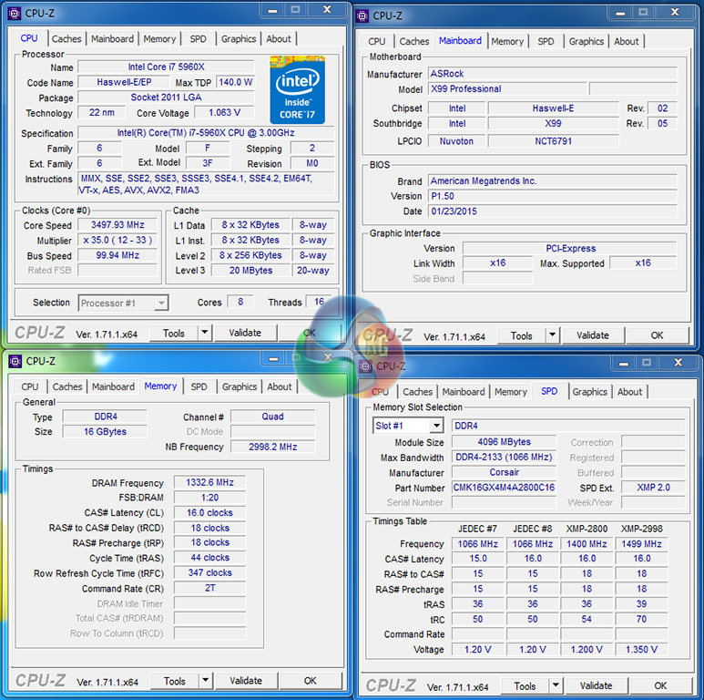 - ASRock X99 Extreme11 (BIOS v1.00) – with 16GB (4x4GB) G.Skill Ripjaws4 2666MHz 15-15-15-35 DDR4 @ 1.25V.