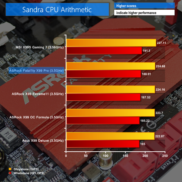 ASRock's Fatal1ty series flagship puts in decent numbers for our first set of system benchmarks. Memory bandwidth numbers are down against the competing solutions due to a different kit being used, although CPU arithmetic results are positive.