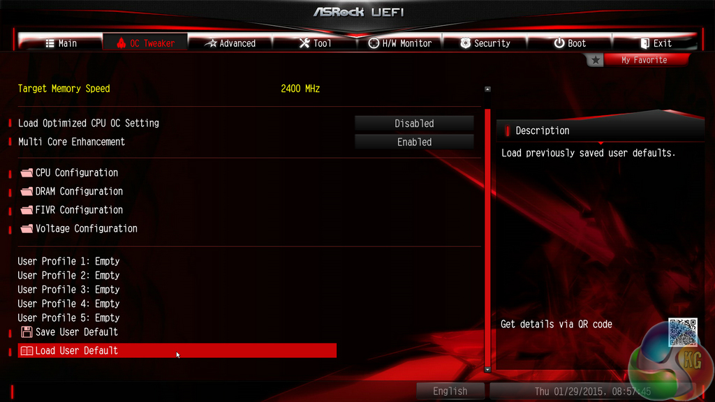 Up to five customised user profiles can be saved to the board's internal memory. I feel the five profiles is sufficient for a motherboard that is not intended for competitive overclocking. A USB flash drive can be used to transfer profiles to and from the board.