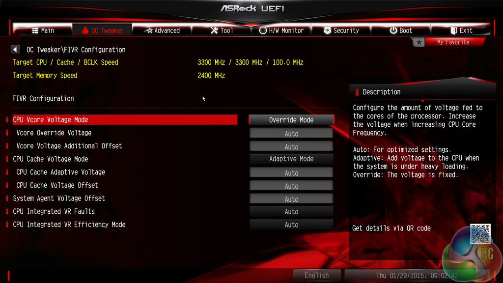 Settings relating to the Haswell-E processor's Fully Integrated Voltage Regulator (FIVR) are given their own section. Here users can apply the primary voltage settings that will deliver their quick-and-easy overclocked settings.