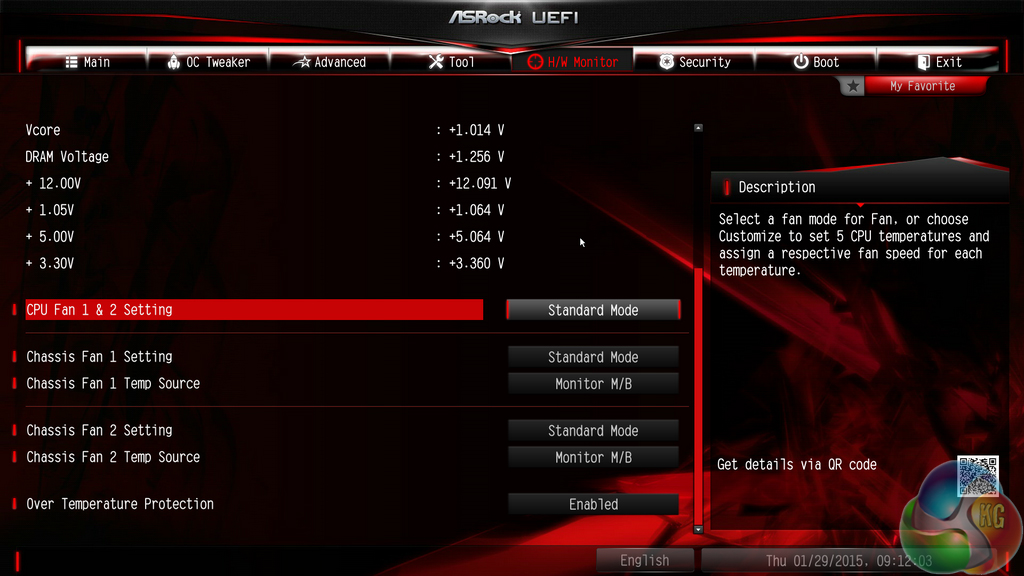 One of the biggest differences between ASRock's other X99 UEFI versions and the one found on its X99M Fatal1ty Killer motherboard is the omission of FAN-Tastic Tuning. The tool's visual fan control function will be missed by users who prefer a graphical method of creating their preferable fan speed profile in the UEFI (the OS version remains in place).