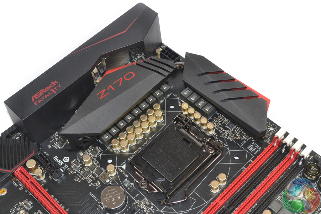 Clearly targeting gamers and enthusiasts who are still fond of the red and black colour scheme, the ASRock Fatal1ty Z170 Gaming K6+ is also outfitted with a styled rear IO cover. The plastic piece compliments the board's styling and is home to additional marketing names, but it also serves the purposes of preventing ESD damage.