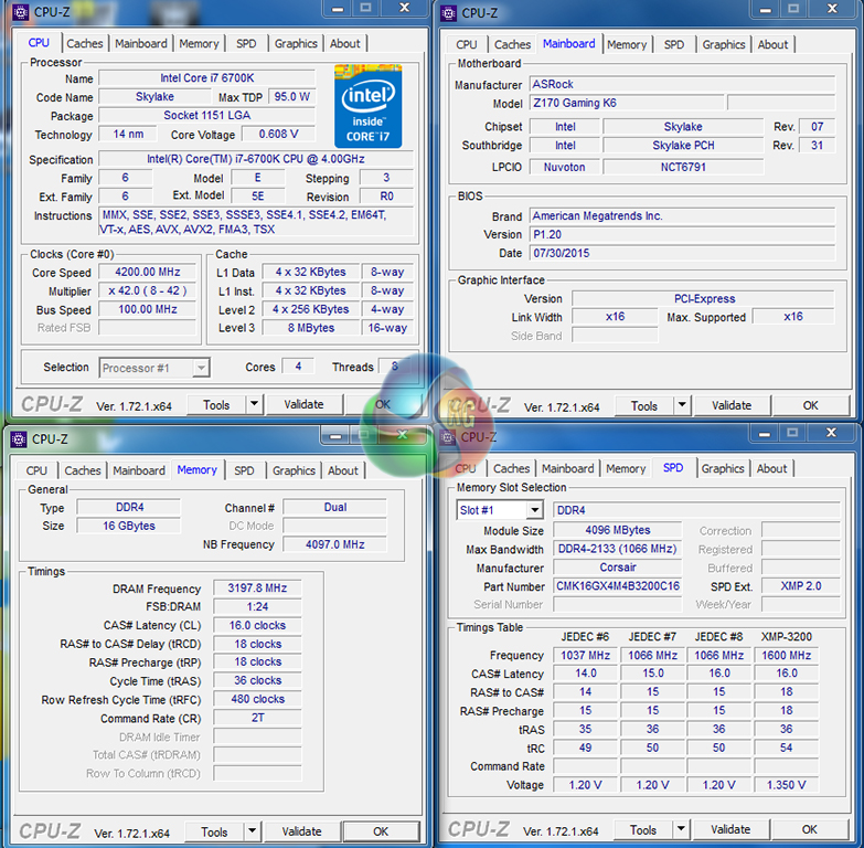 - ASRock Fatal1ty Z170 Gaming K6 BIOS v1.20 (latest at the time of testing).