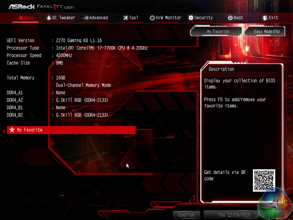 Pressing F6 takes you into the Advanced UEFI sections which is opened on the Main page (this can be changed). Pieces of information are displayed on this page but the quantity of content is slim.