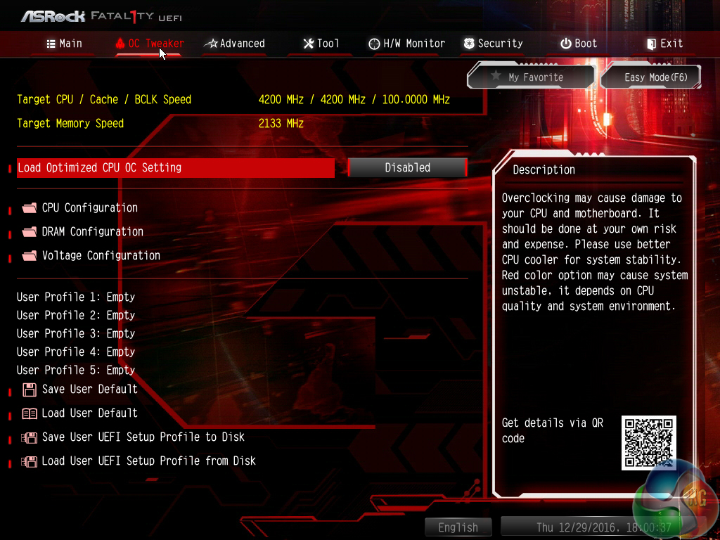 OC Tweaker is the section where the important overclocking parameters can be accessed. ASRock splits the subsections into CPU, DRAM, and Voltage configurations in order to segregate the vast amount of settings that can be changed. Up to five user user profiles can be saved to the board's internal memory and these can be exported and imported via USB flash drive.