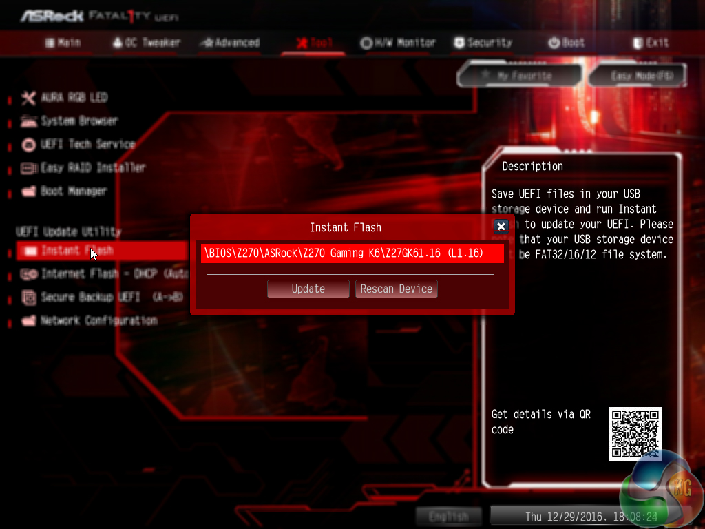ASRock's Instant Flash tool can scan through folders in a storage device to search for a compatible BIOS profile. This makes BIOS updates a simple task. There's also an option to update the BIOS via the internet.