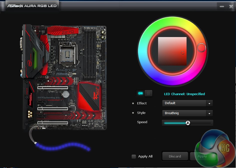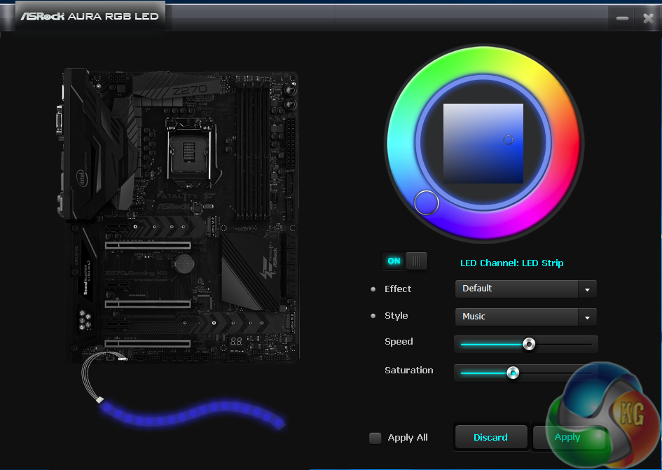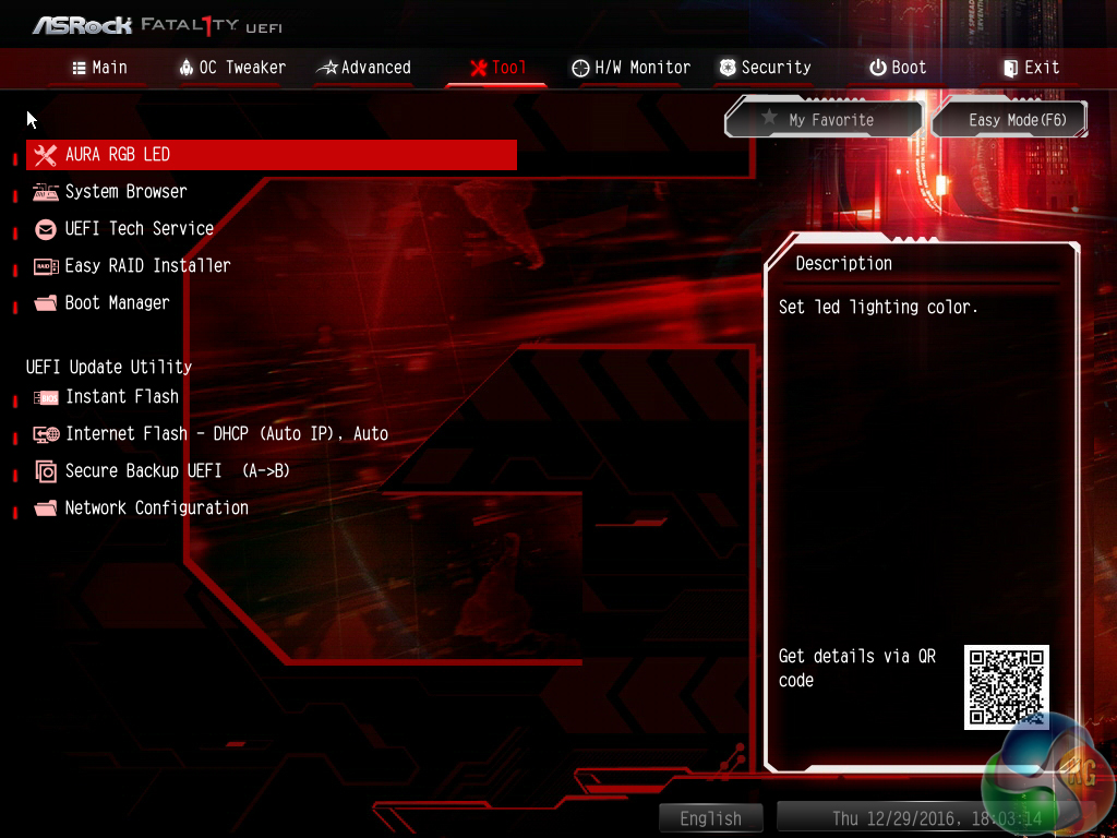 The UEFI-based AURA RGB LED tool allows the individual colour sections to be adjusted in terms of actual colour and LED activation mode. The tool is similar to the OS version, which is more of an indication of the simplicity of the latter rather than the complexity of the former.