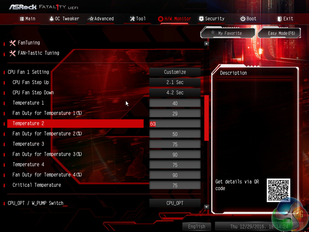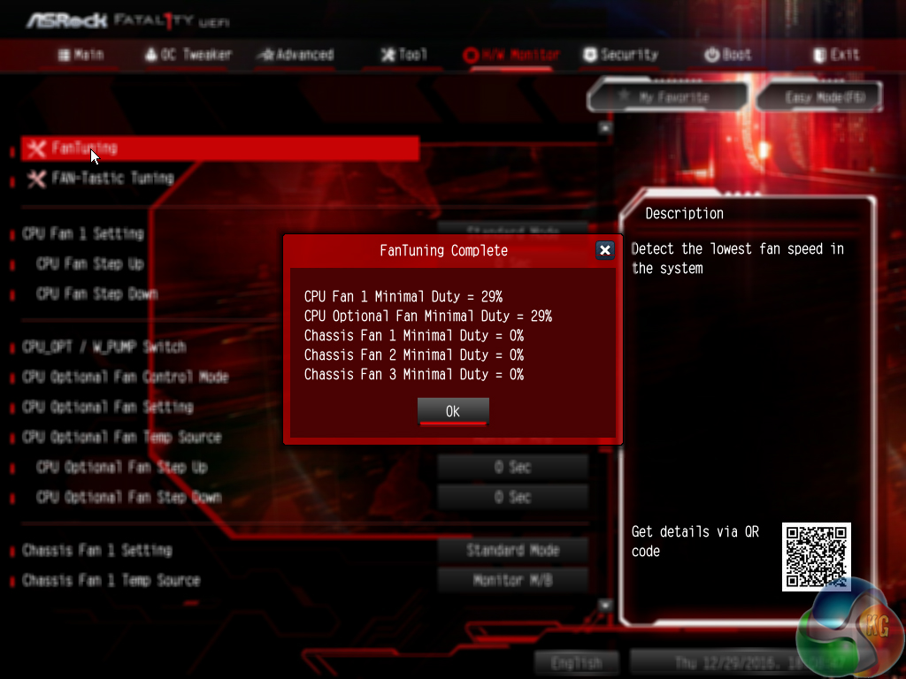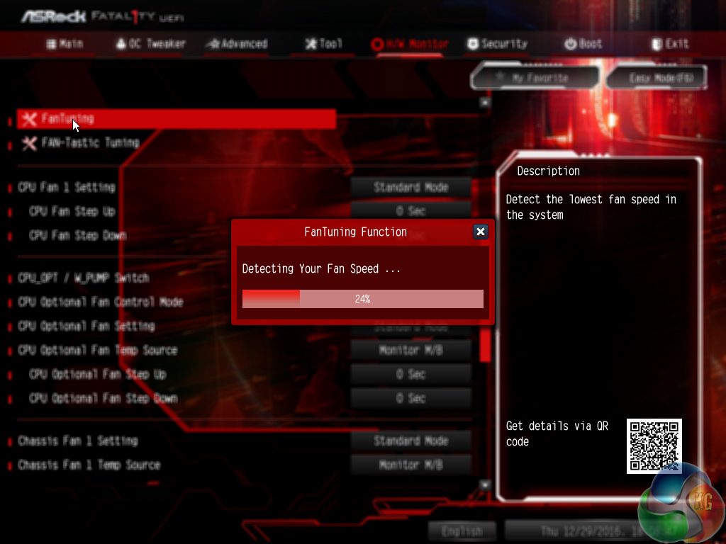 ASRock provides an automated fan tuning tool that scans your system's fans for their lowest rated speed (in order to keep noise levels low). FAN-Tasting Tuning is, despite its silly name, a good tool for adjusting fan speed curves in a manual fashion. The fan speed can be set to 0% at as low as 30°C, which is good to see as some competing vendors do not allow the 0% operation that certain fan models support.