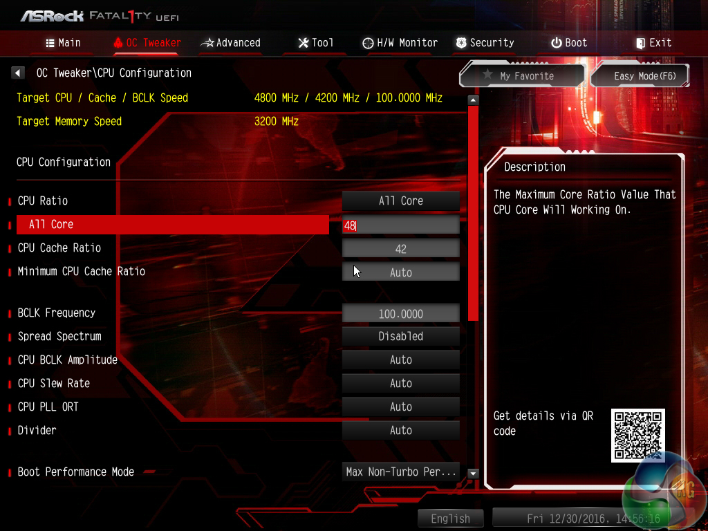 We maintained the DRAM frequency at 3200MHz to take its stability out of the overclocking equation. Cache frequency was manually set at its stock MCT value of 4.2GHz as the ASRock board had a tendency to increase the cache speed to 4.6GHz or 4.8GHz when the Auto setting was applied.