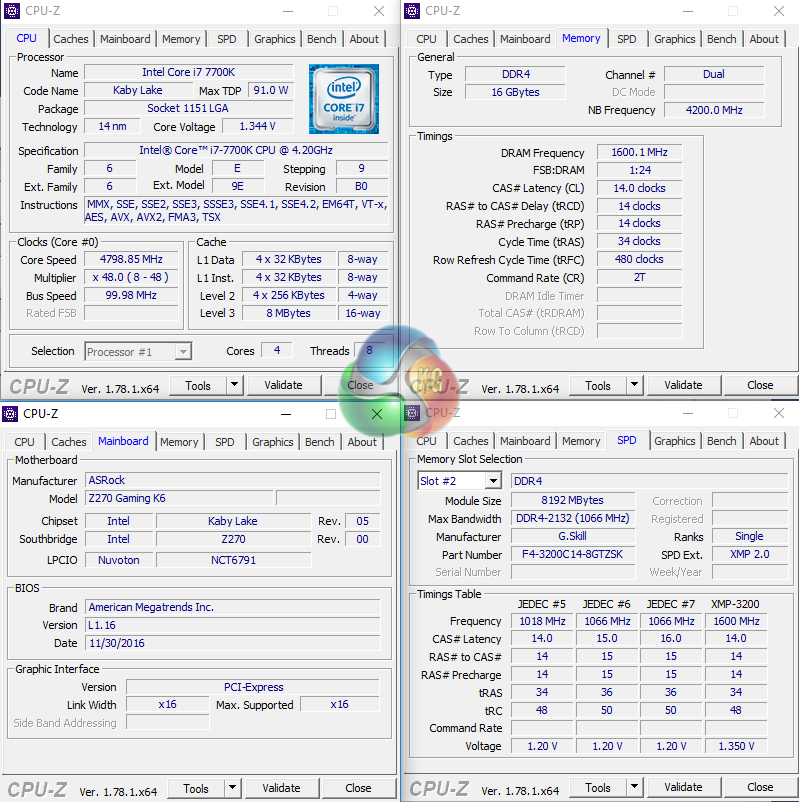 As a performance comparison, we have included the results from two other Z270 motherboards. The maximum overclocked configuration achieved with each board was a 4800MHz (48 x 100MHz) processor frequency whilst using 3200MHz CL14 memory.