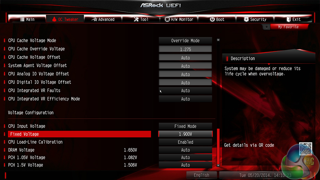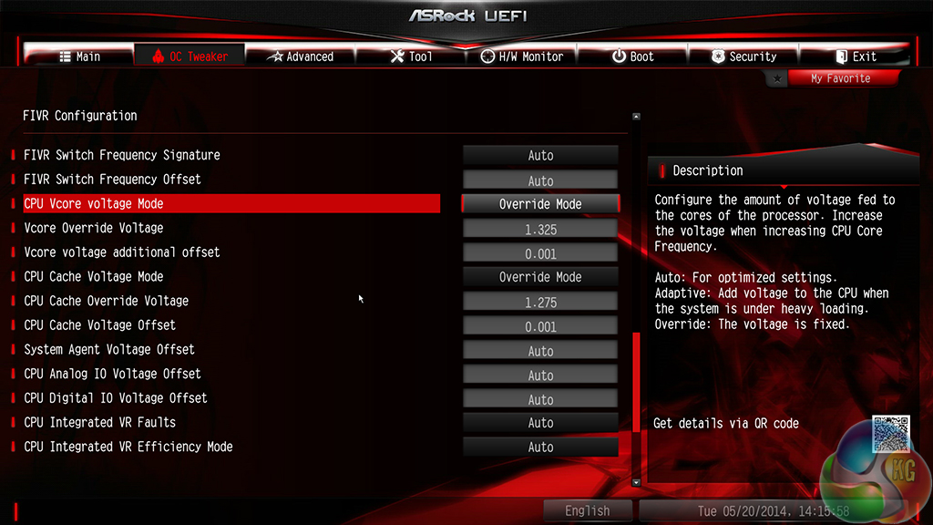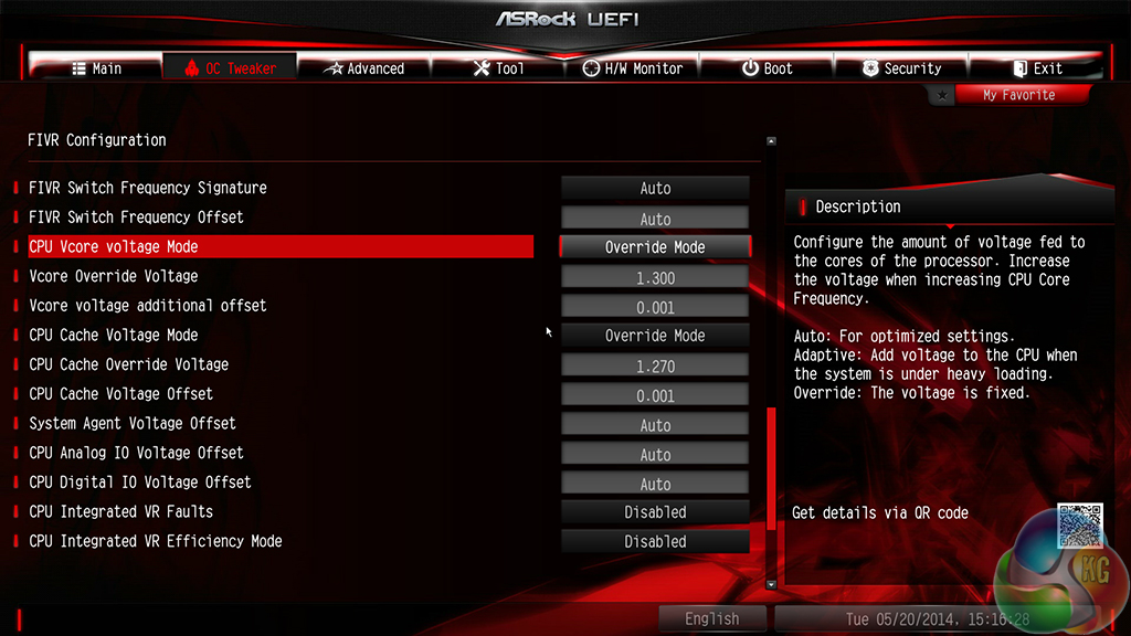 We have reported this problem a number of times with ASRock's Z87 motherboards so the company clearly isn't listening to feedback. Selecting an ‘override' voltage should give an override voltage; all other parameters and offsets should be disabled to provide the user-defined voltage level, otherwise there is absolutely no point in providing the ‘override' setting.