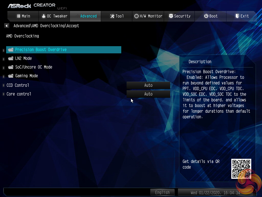 Settings more closely tied to the AMD CPU operation are found within the Advanced section. Settings such as CCD and core operations can be adjusted. There is also access to the Precision Boost Overdrive settings.