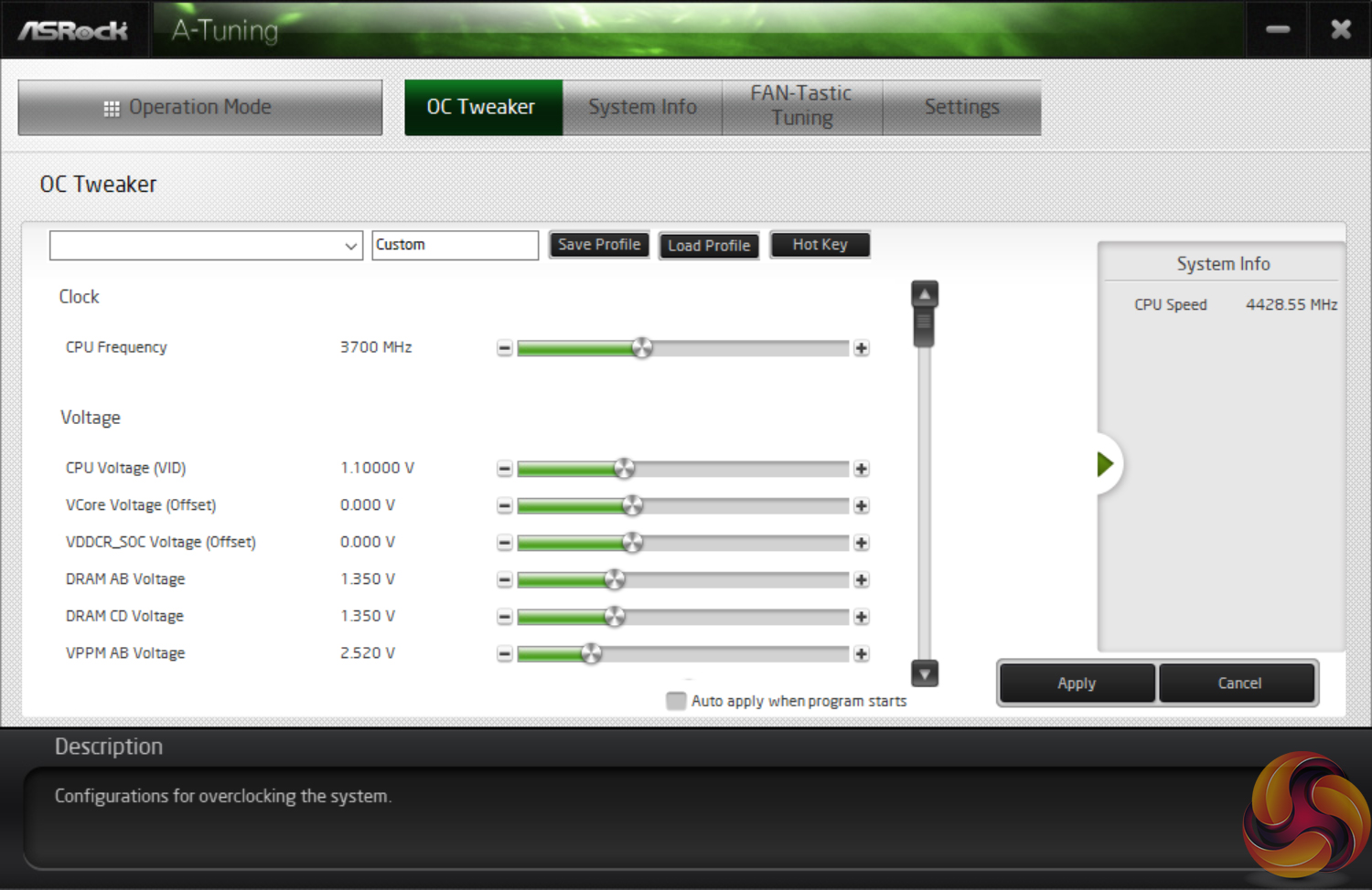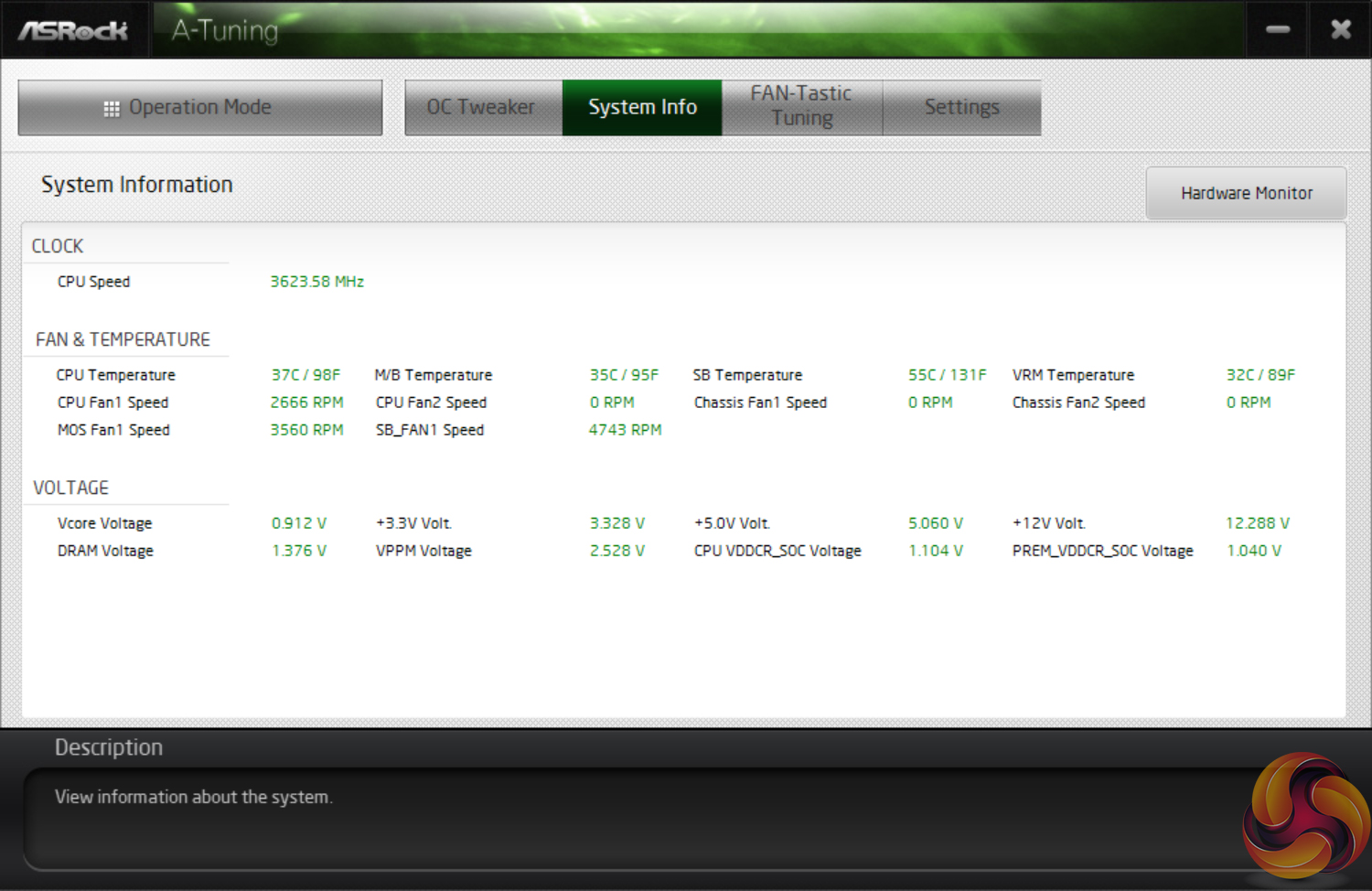 A-Tuning is the other key piece of software that ASRock offers. This tool is primarily centred around controlling system operations such as fan speed and displaying information such as frequencies, temperatures, and voltages.