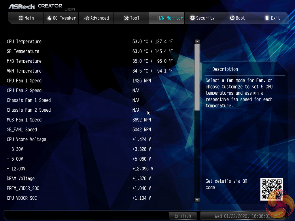 Unfortunately, the FAN-Tastic Tuning section did not work in our testing with the TRX40 Creator. We expect its abilities to be the same as what we have seen from other ASRock motherboards whereby fan speeds can be configured visually using a multi-point curve.