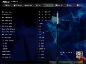H/W Monitor contains fan controls and a number of temperature and voltage readouts for monitoring.