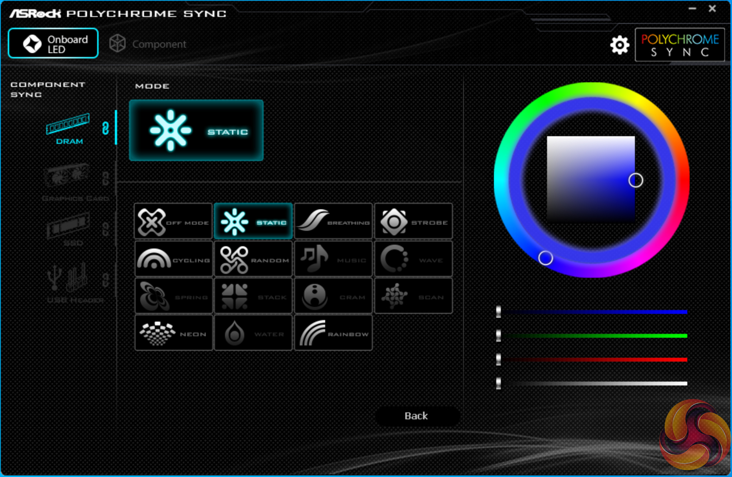 ASRock's primary OS software offering is Polychrome Sync RGB. This tool allows users to control RGB lighting through their motherboard and it worked well in our testing. There are options for different lighting modes, colours, and speeds.