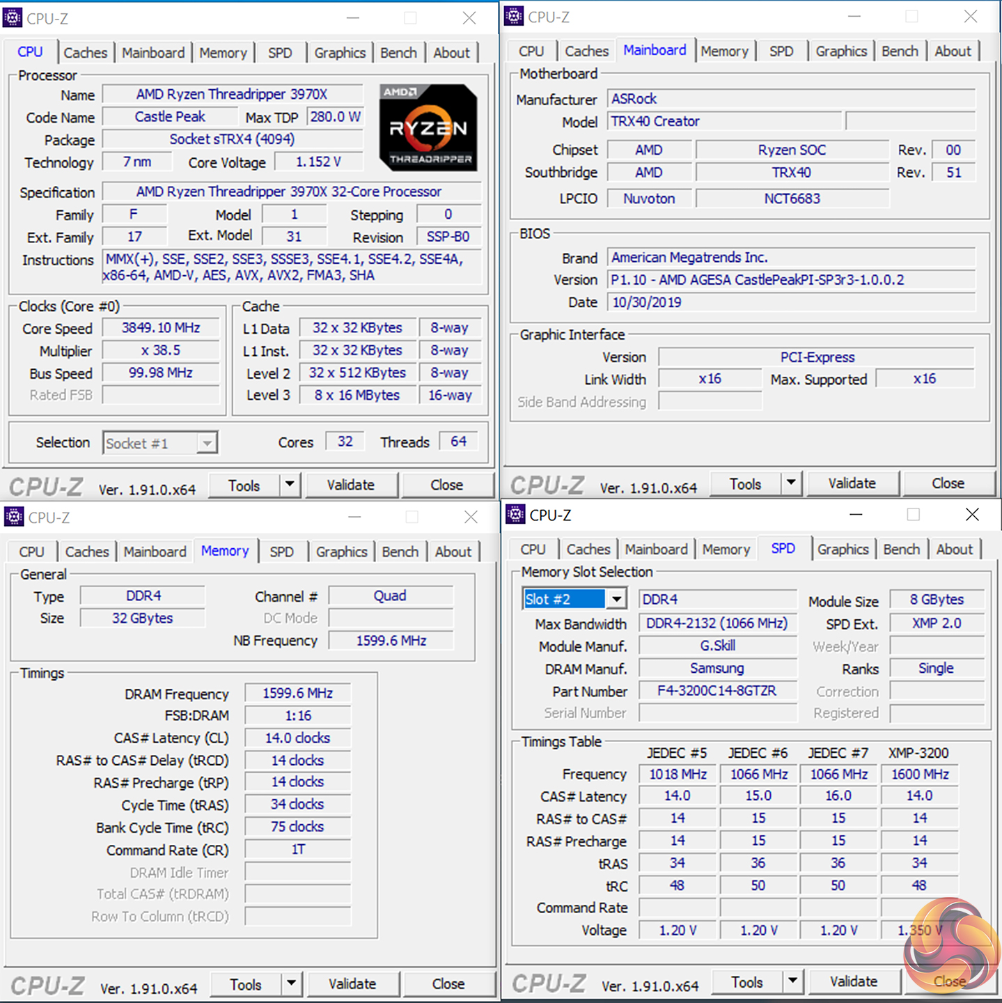 - ASRock TRX40 Creator BIOS 1.10 [AGESA 1.0.0.2] (latest at the time of testing).