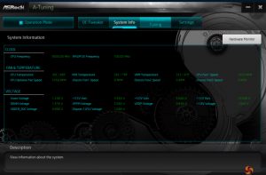 A-Tuning is ASRock’s equivalent to ASUS AI Suite, Gigabyte EasyTune, and MSI Command Centre. This software allows you to overclock on the fly (OTF) and tune the fan speeds with the ASRock Fan-Tastic tuning utility. It’s a reasonably well-polished piece of software, is light on system resources, and not very intrusive. A-Tuning is decent but it had glitches in our testing (Hardware Monitor did not work) and is no better than ASUS, Gigabyte, or MSI alternatives.